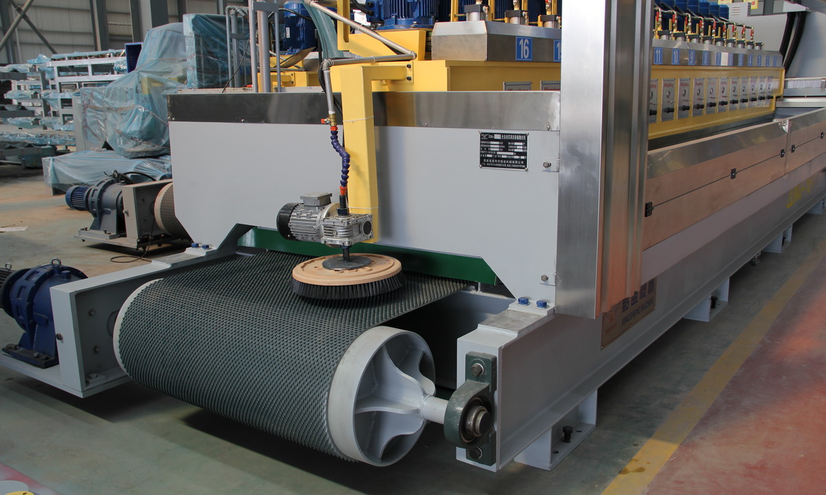 1.該機采用外方設計方案及自動系統,結合國內市場需求,該產品性能穩定,高產量、低維護。 2.該機選用標號鑄件、鋼材。軸承、電機、減速器等部件選用德國、日本、臺灣等品牌電器。 3.該機控制系統采用PLC終端控制,以液晶顯示觸摸屏終端為人機界面進行參數設定,設備運行過程中設有故障提示等等。該機適用于花崗石條板的連續磨削及拋光。板材輸送帶、磨盤橫移梁的工作速度均為變頻器調速;磨盤工作壓力、板材的磨削寬度在設定值范圍內可調。本機可對板材形狀自動識別,每個磨盤(磨頭)可根據識別板材的形狀自動升降,同時對板材磨削進行跟蹤記錄。性能穩定、故障率低等優點。