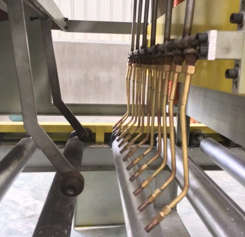 全自動系列燒花機是主要針對花崗巖板材表面的毛化處理,該系列設備的問世,徹底改變的以往人工燒板效率低、成本高、表面紋理不均等缺陷,使石材表面毛化處理實現高產量、高品質、低成本新時代,是石材毛化處理的理想設備。 該類設備優點在于: ●燒板槍頭可以根據板材變形量自動調節其與板面距離,以達到理想地燒板效果 ●加工成本低,耗氣量小,氣體用量比人工燒板節省一二成 ●燃料氣路自動斷氣保護,確保用戶安全操作 ●進板采用無極變速,用戶可根據各種板材特性選擇不同的板材進度 ●全電腦觸摸操作系統,操作簡單,實現人機智能對話作業 ●流水線作業,大大提高產量和產品質量 ●設備故障自動檢測報警,幫助用戶輕松解決設備問題 ●槍頭隨板變形量自動升降 ●自動斷氣保護 ●全電腦觸摸操作界面 ●進板無極變速 ●耗氣量較人工燒板節省二三成 根據石材不同用戶需求,已相繼推出:shj800系列燒板機,深受用戶青睞,產品供不應求,目前 已在山東、河南、湖北、湖南、廣西、遼寧、廣東、福建、吉林、等省份使用